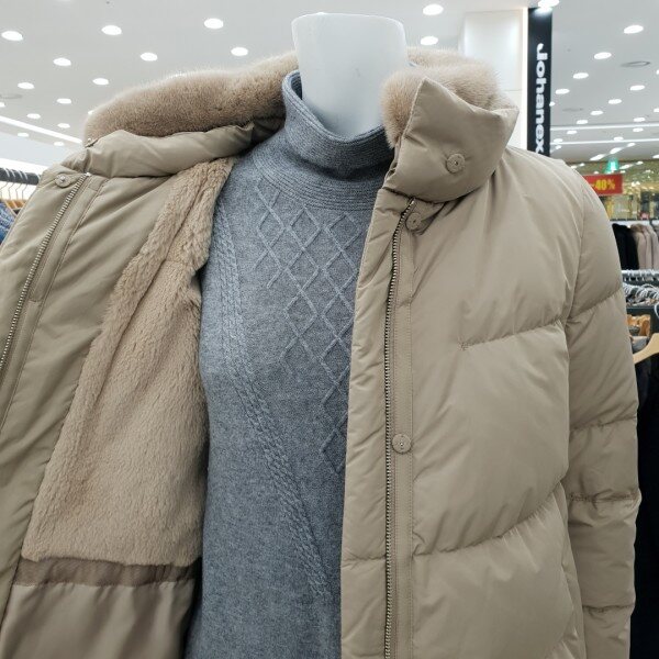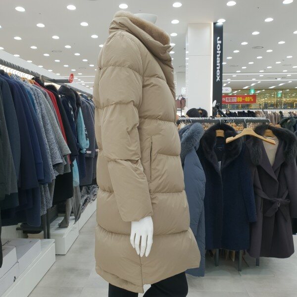 거위털 패딩으로 탈부착 밍크카라이며 등안쪽에는 따뜻하게 토끼털로 트리밍되어 있고 풍성하게 거위털이 들어있는상품입니다