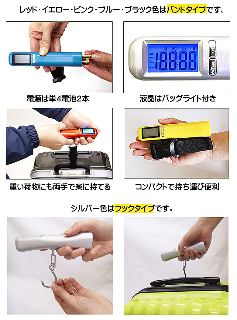 手荷物の重さを簡単に計量できる計測器です。