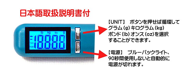 付属品:日本語取扱説明書・単4電池2本(テスト用)