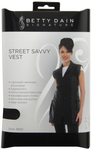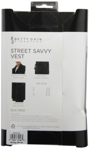 Zyrca 39 L Street Savvy Stylist Vest, Lightweight Leatherette and Polyester, Rolled Collar, Removable Pockets, Adjustable Waist Cinchers, Black, Large