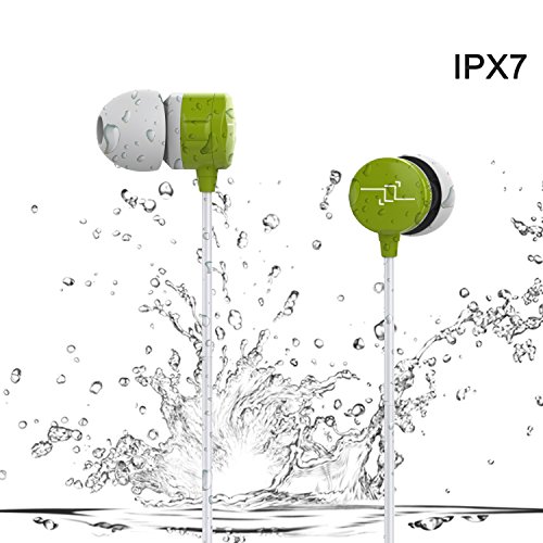 In Ear Earphones, USTEK WP-593 Earbuds Wired Headphones Waterproof IPX7 Green