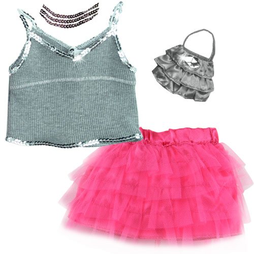 -. Feature : Stylish 4 Pc. Doll Skirt Outfit, Perfect for your favorite American Girl Doll, Gotz or Sophia's Dolls / This Fun and Exciting 18 Inch Doll Outfit includes a Silver Satin Purse with a Jewel, Sequin Necklace, Sequin Trimmed Ribbed Gray Tank Top & / Hot Pink Tulle Skirt. Doll & Shoes not included. / Made with Sophia's Promise: Superior Quality, Stylish & Affordably P.R.Iced! / Made by Sophia's, Leading Doll Clothes Manufacturer, Not affiliated with American Girl®, Reg. Trademark of American Girl, LLC.