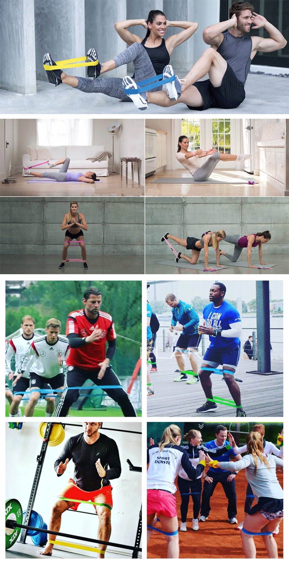 The training band set is a newly designed 100% natural rubber environment friendly material fitness equipment to satisfy muscle training requirements of different parts of the human body.