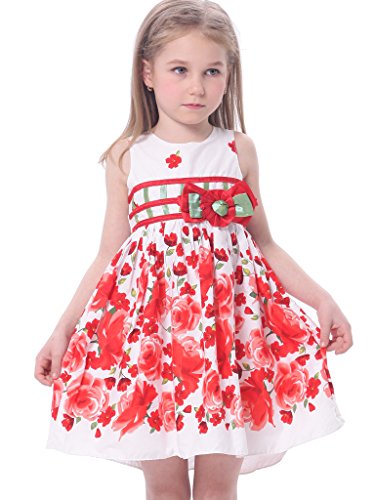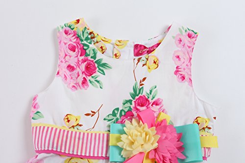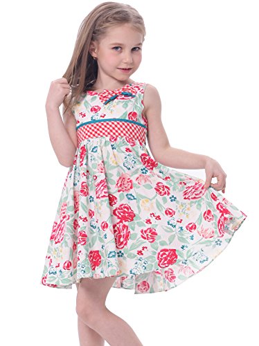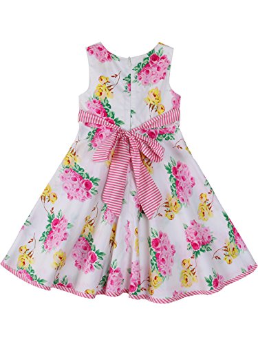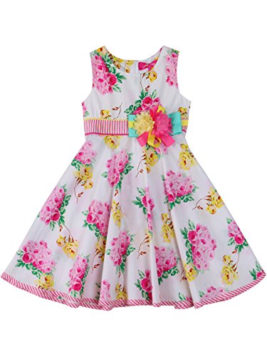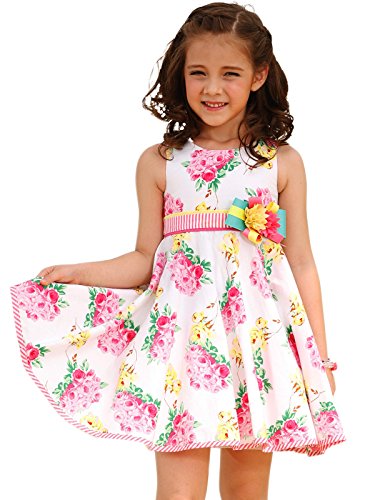Bonnybilly Girl's Round Neck Sleeveless Floral Printed Foil Dress with Sash is a woven cotton floral sundress with comfortable materical and good making.