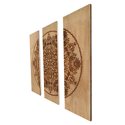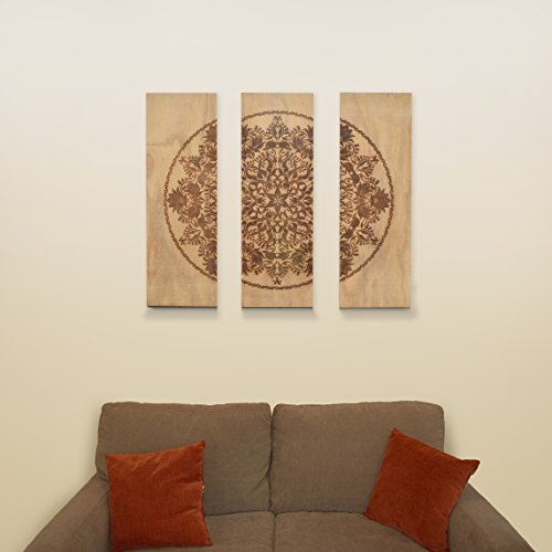 gbHome GH-6792 3-Piece Wooden Wall Decor, Decorative 3 Piece Wood Hanging Art With Engraved Design 35.4 x 35.4" Square, 11.9 x 35.4“ Each Panel, Accent For Home & Office Rustic Antique Distressed Look