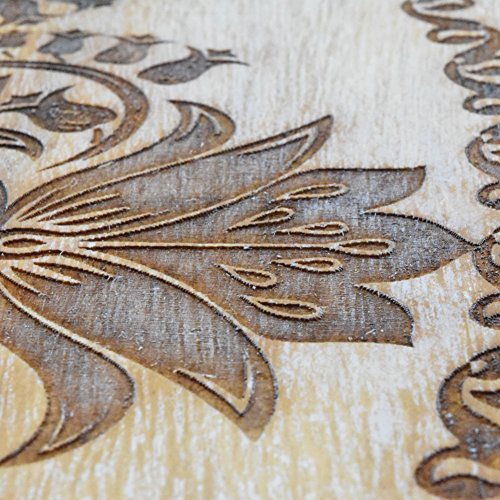 REFINED: Exclusive white washed wood provides an exquisite vintage look. Beautiful laser cut engraved round medallion art design and hand brushed finish. Every piece is unique! Excellent gift idea.