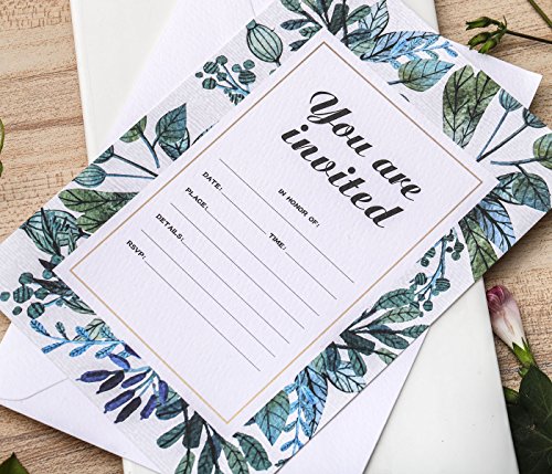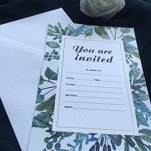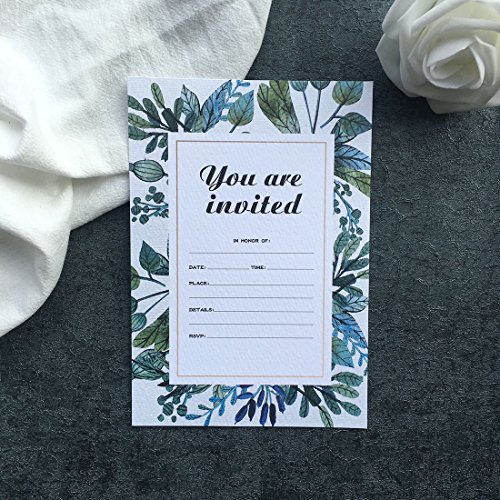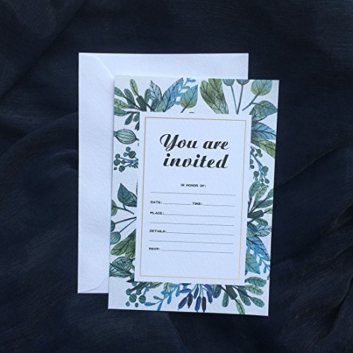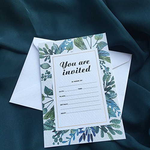 30 Fill-In Invitations with Envelopes, Beautiful Green Wedding Invitation Cards, Bridal Shower, Baby Shower, Reception, Rehearsal Dinner, Birthday Invites