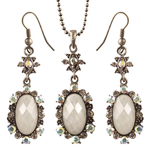-. Binding : Jewelry -. Brand : Crystal Elegance UK -. Department : womens -. Feature : Exceptional price and quality. / Beautiful elegant flower design white opal crystal drop set - 40cm chain, 4cm pendant drop, 4 cm earring drops. / Comes with stunning opal earrings that measure 4cm length drop down length / Extremely light and comfortable to wear - gift boxed. / Vinatge design makes this set a must-have fashion item. -. Label : Crystal Elegance UK -. Manufacturer : Crystal Elegance UK -. Model : spblackset13 -. MPN : spblackset13 -. PartNumber : spblackset13 -. ProductGroup : Jewelry -. ProductTypeName : FASHIONNECKLACEBRACELETANKLET -. Publisher : Crystal Elegance UK -. Studio : Crystal Elegance UK -. Title : Elegant White Retro / Gothic Design Crystal Flower Drop Necklace Earring Set for Her