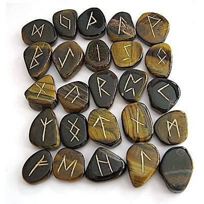 SET OF RUNES POLISHED TIGER'S EYE GEMSTONES