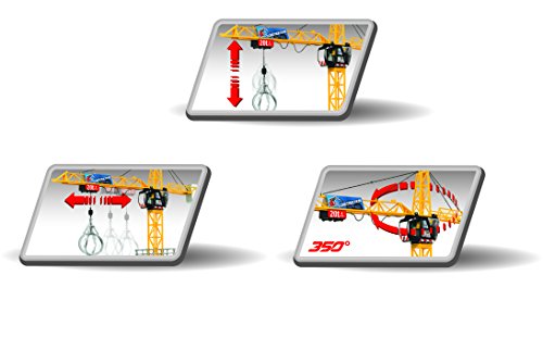 -. Binding : Toy -. Brand : DICKIE TOYS -. ClothingSize : One Size -. Color : One Color -. Department : boys -. EAN : 4006333024603 -. Feature : The Dickie Toys Construction Mega Crane: mega toy for mega fun! / The 48" toy crane with cable remote control is a present that is sure to make children's eyes light up. / The crane cabin rotates by 350 degrees at the press of a button, the trolley and winch move just like the full-size version. / The extra construction vehicle and various attachments allow all kinds of building materials to be transported. / Transform the playroom into an imaginative playworld - with toys from Dickie Toys Construction! -. IsAdultProduct : 0 -. IsAutographed : 0 -. ItemPartNumber : 20 346 2413 -. Label : Dickie (Imports) -. Manufacturer : Dickie (Imports) -. Model : 20 346 2413 -. MPN : 20 346 2413 -. NumberOfItems : 1 -. PackageQuantity : 1 -. PartNumber : 20 346 2413 -. ProductGroup : Toy -. ProductTypeName : CHILDRENS_COSTUME -. Publisher : Dickie (Imports) -. Size : One Size -. Studio : Dickie (Imports) -. Title : Dickie Toys 48" Mega Crane and Truck Vehicle and Playset -. Warranty : No Warranty