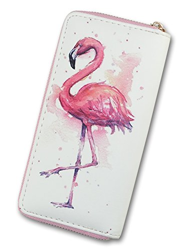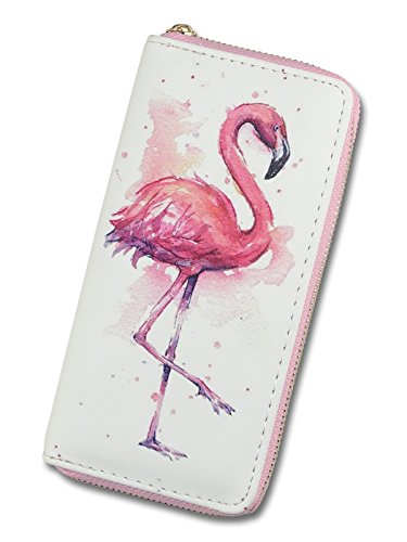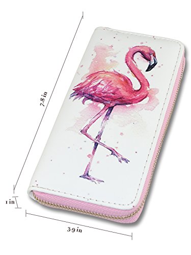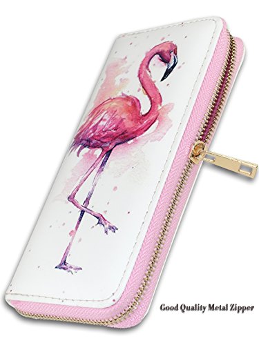 Women's Long Zipper Wallet Leather Print Flamingos,Ladies Clutch Purse