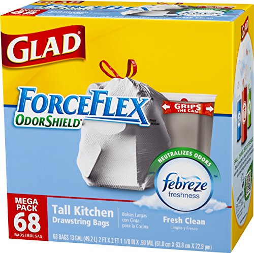 - Title : Glad ForceFlex OdorShield Tall Kitchen Drawstring Trash Bags, Fresh Clean, 13 Gallon, 68 Count