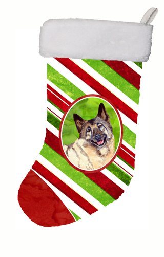 Caroline's Treasures Norwegian Elkhound Candy Cane Holiday Christmas Stocking, 11 x 18", Multicolor