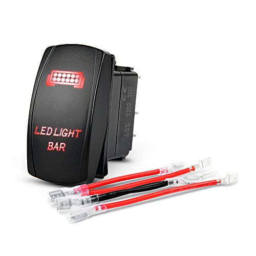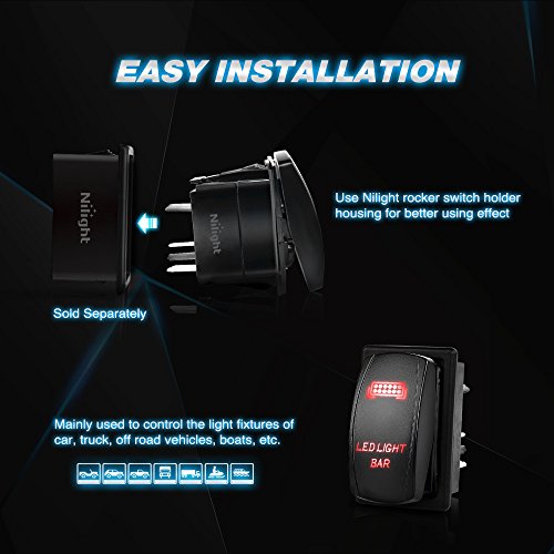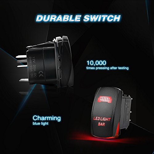 Nilight LED Light Bar Rocker Switch Red 5Pin Laser On/Off LED Light 20A/12V 10A/24V Switch jumper wires set ,2 years Warranty