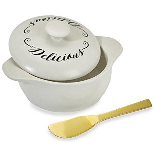 Ceramic Brie 5" Cheese Baker White Delicious Bake Serve Gift Set Gold Spreader