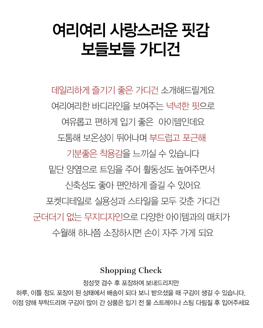 .같은 사이즈라도 체형에 따라 핏감이 조금씩 다를 수 있습니다.