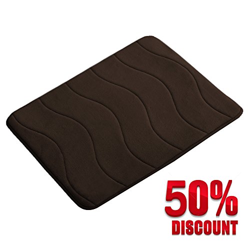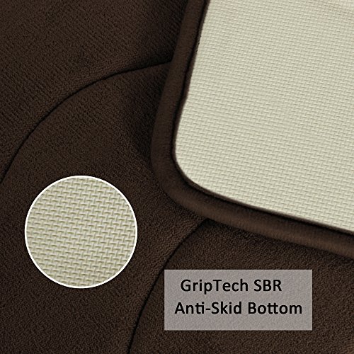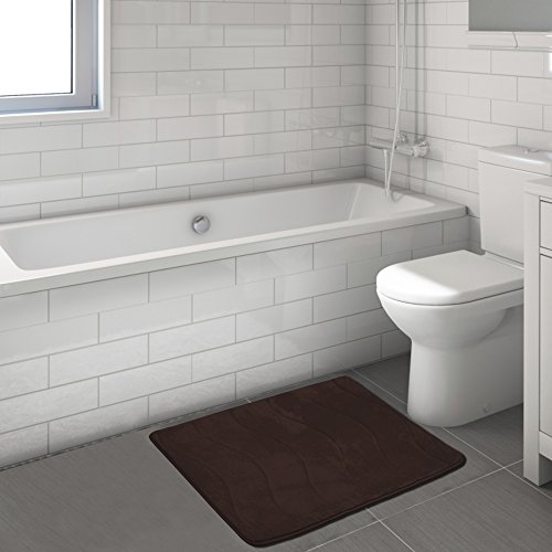 FlamingoP GripTech SBR Waterproof with Anti-Skid Protection Memory Foam Waved Pattern Fieldcrest Luxury Bath Rugs, 20 Inch by 32 Inch, Brown