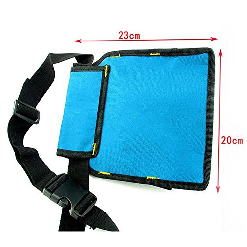 Binding : Misc. Product Description Features: Made from high quality cloth, this tool bag is durable, wearable, lightweight and easy to carry. There are 2 outside soft loops in which you can put wrench, ratchet handle or other tools. The well designed big side pocket with zipper could keep small objects. Belt has a snap buckle for quick fastening and the length of belt is adjustable. It is a great tool bag for electricians during installing or maintenance. Specifications: Material:Oxford canvas Size: 20 x 23cm Color:blue Package Includes: 1 x Bag(tools are not included) 0