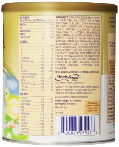 Studied before the addition of LGG. / Designed to help your baby build tolerance to cow's milk, this formula is made with the probiotic LGG and has been proven to help build oral tolerance to cow's milk. / It's the #1 infant formula brand for cow's milk allergy management and provides complete nutrition for your baby's first year. / Its extensively broken-down proteins are hypoallergenic and easy to digest. / It has important brain-nourishing nutrients, such as choline, and DHA as recommended by experts; the powdered form includes the probiotic LGG to help support digestive health. / Nutramigen LGG is clinically proven to manage colic due to cow's milk allergy fast, often within 48 hours, while still providing the complete nutrition your baby needs to reach key milestones / Nutramigen LLG has been clinically proven to manage colic in over 70 studies / Nutramigen LLG provides complete nutrition for your baby's first year / Nutramigen LLG powder includes Probiotic LGG to help support digestive helprobiotic LGG to help support digestive help / Nutramigen LLG has DHA and ARA to promote brain and eye development
