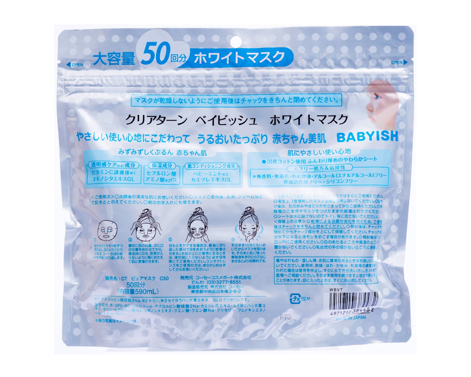 Transparent feeling care ingredients are delivered to the skin and it reaches to the baby's skin which is fresh and fresh.