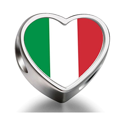 Italy flag Heart Silver Plated Charms Bracelet Necklace Beads Waist Beads 6mm Hole Craft Metal Beads floating Charms for Women