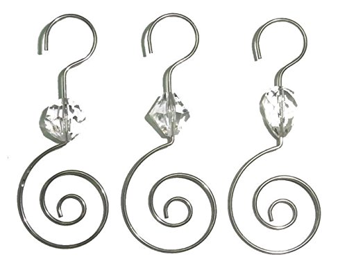 Scroll Swirl Ornament Hooks for Collectible Ornament Display, Pack of 12, Silver Tone with Rhinestone Bead Accent