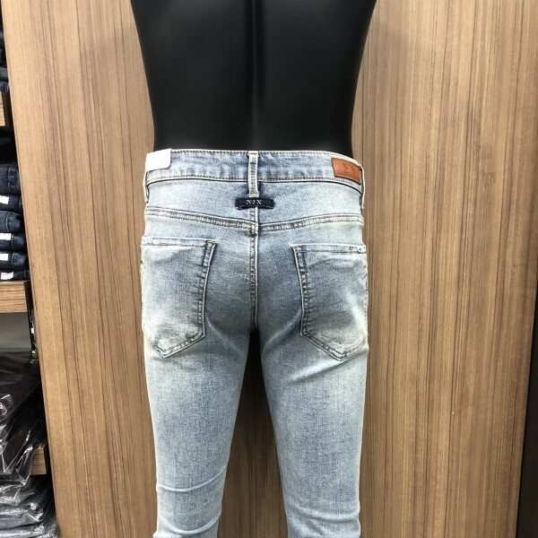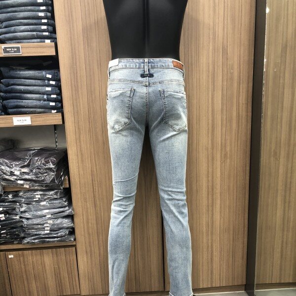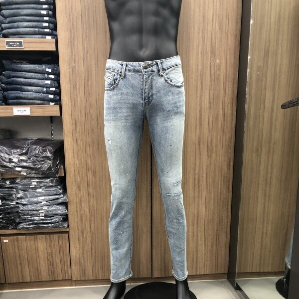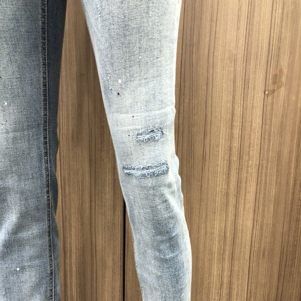 고급스러운 라이트인디고컬러의 데님으로 디스트로이드와 스티치 장식의 워싱공정이 많은 아이템