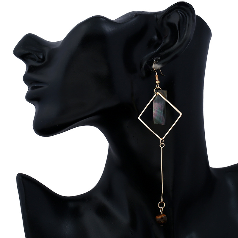 产品名称:2017热卖韩版女生耳饰 欧美时尚简约不对称几何金属贝壳 耳坠耳环