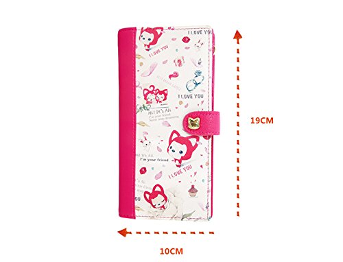 Ali Fox Women's Cute Cartoon Fox Long Wallet 7.5" (L) X 4" (W) X 1.5"(H) Color: Pink