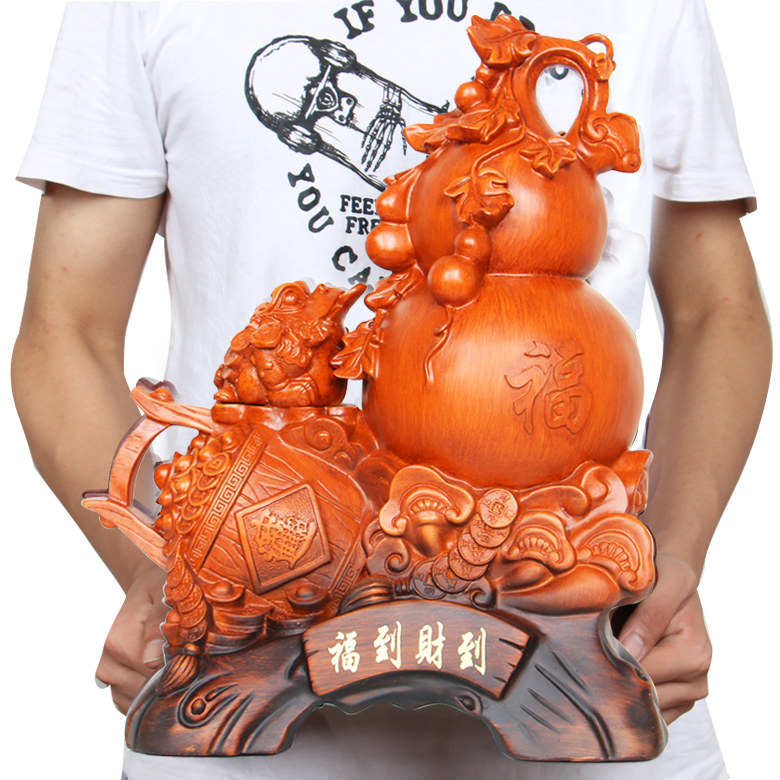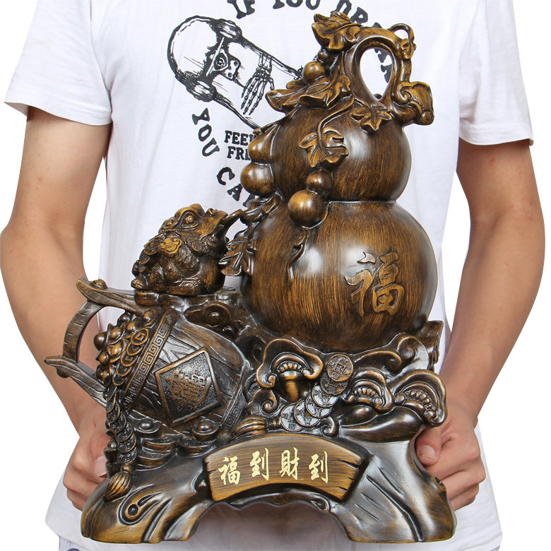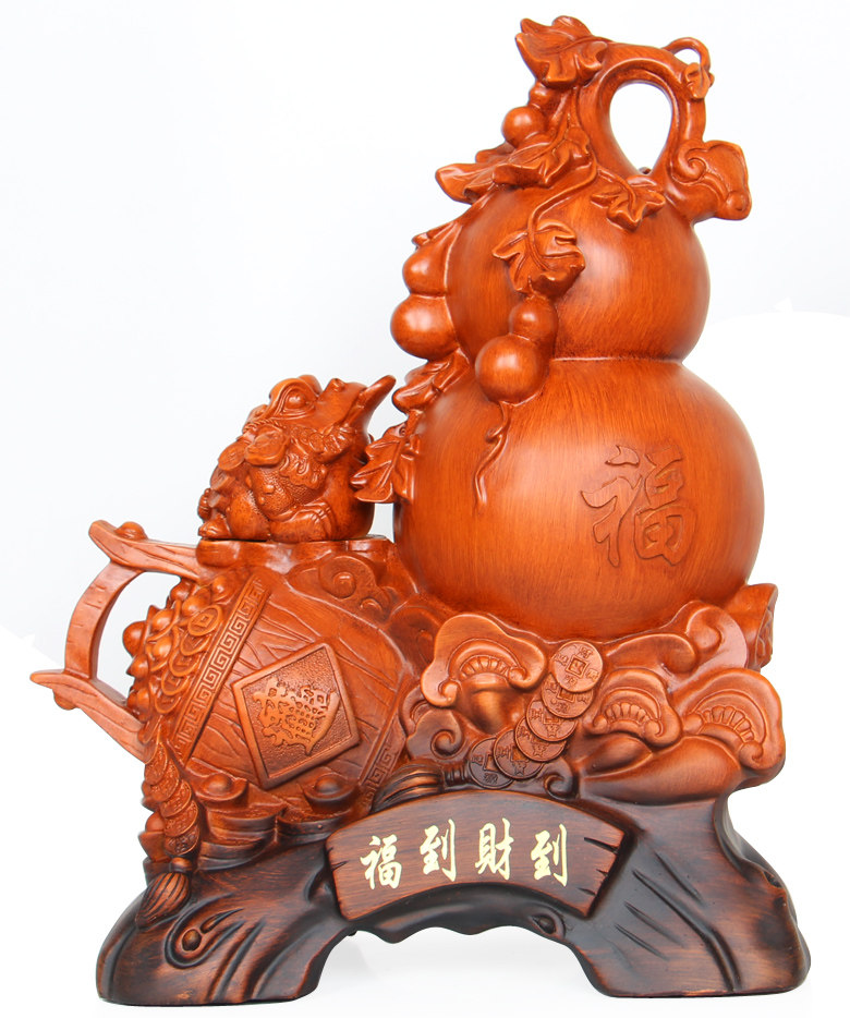 福到财到风水葫芦摆件 金蟾一桶财富聚宝盆摆设家居仿木工艺礼品