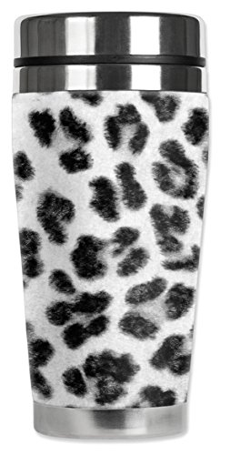 Mugzie 880-MAX "Snow Leopard" Stainless Steel Travel Mug with Insulated Wetsuit Cover, 20 oz, Black