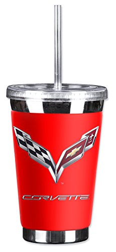 Mugzie GM-195-TGC "Corvette C7 Logo (Red)" To Go Tumbler with Insulated Wetsuit Cover, 16 oz, Red