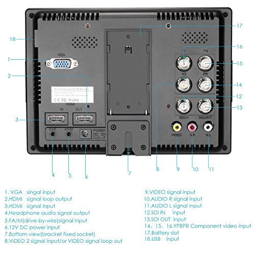 -. Feature : ご注意:4Kカメラの場合、ビデオモードを1080Pに調整してください。そうしないと使えないです。アイテムの電源はF970またはQM91Dバッテリーで使えるが、バッテリーは含まれていません。 / 総合的なインタフェース:HDMI入力、コンポジットビデオ、オーディオ入力、VGA入力をサポートします。1080iおよび1080p HDMI信号をサポートします。Sony F970 QM91D F550 F570 F750 F770 F950 バッテリと交換性があります。(バッテリーは含まれていません) / プロなソフトウェア機能:IR赤外線リモコン;AF;カメラ露出;イメージフリップ(U / D、L / R)、色温度;カラフルな鮮明度の画像を表示できます。低消費電力で性能が良いです。 / 360度の調節可能なホットシューを使用すると、撮影中にスムーズに角度を変えることができます。布製のサンフードは光を維持でき、さまざまな環境に適しています。 / HDモニタースクリーン:IPSは178度の視角、300cd/m2の明るさと500:1のコントラストにより、より多くのパースペクティブを保証できます。追加のモニタースペースは、画像を重ならないで情報を表示できます。航空写真撮影もサポートしています(AVケーブル付属)。ステディカム、DSLRリグ、カムコーダーキット、ハンドヘルドスタビライザーに対応するために設計されています。
