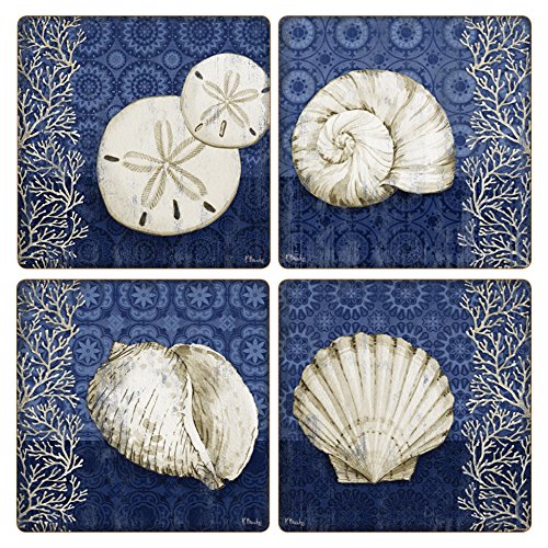 CoasterStone AS10161 "Deep Blue Sea" Absorbent Coasters (Set of 4), 4-1/4", Multicolor