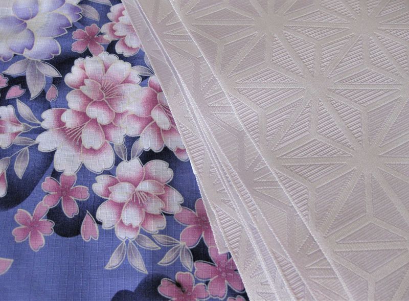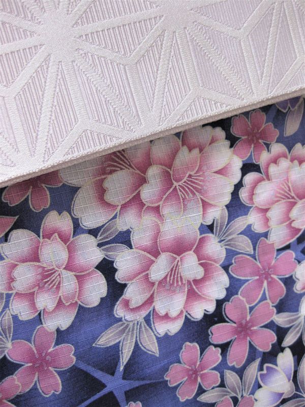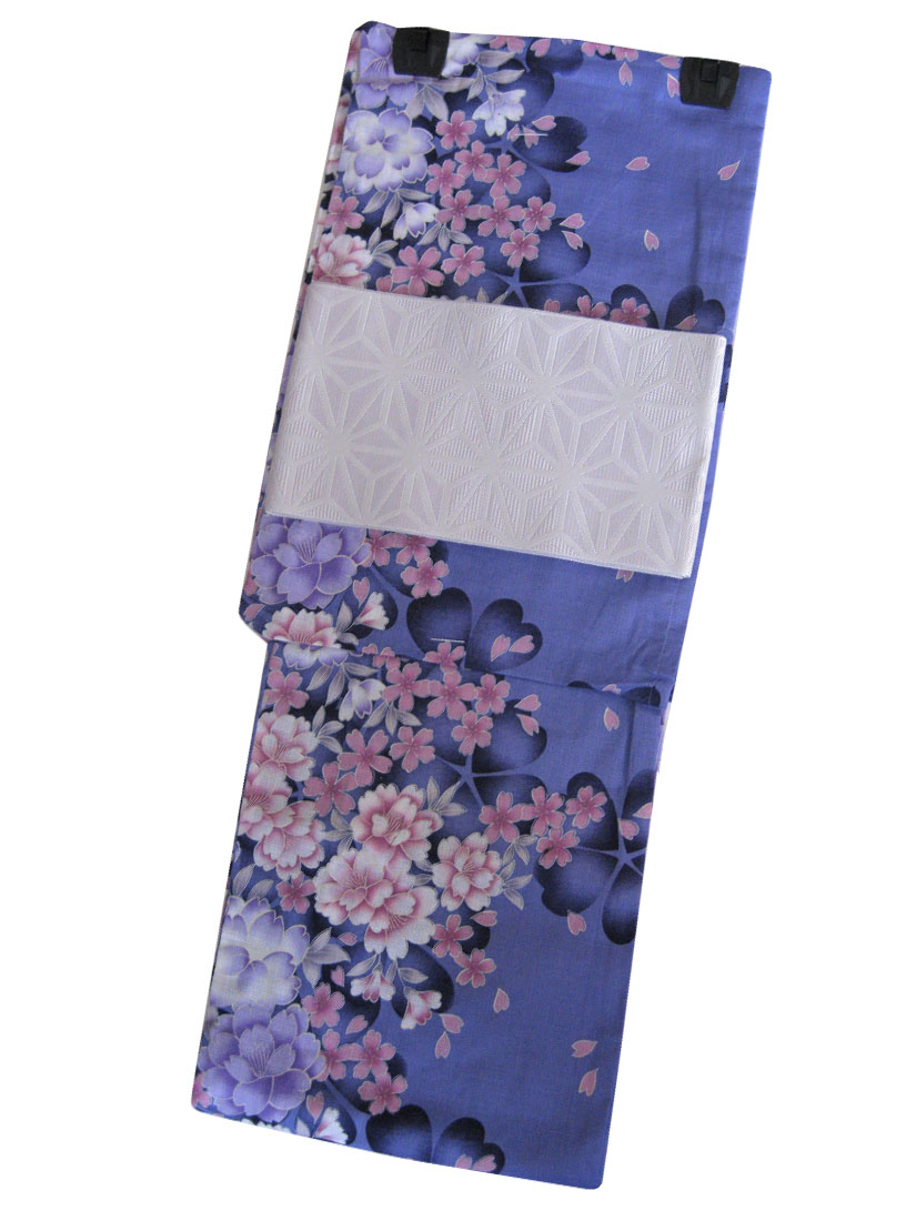 【限定1組】「女性らしく優しい印象♪桜柄浴衣+日本製麻の葉柄浴衣帯」