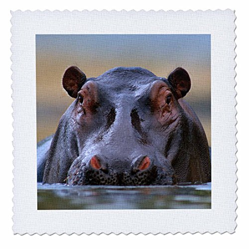 3dRose Hippopotamus Amphibius, Kenya, Africa Quilt Square, 8 x 8"