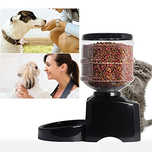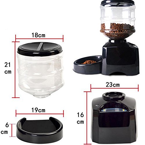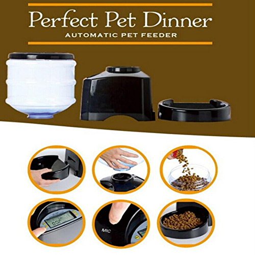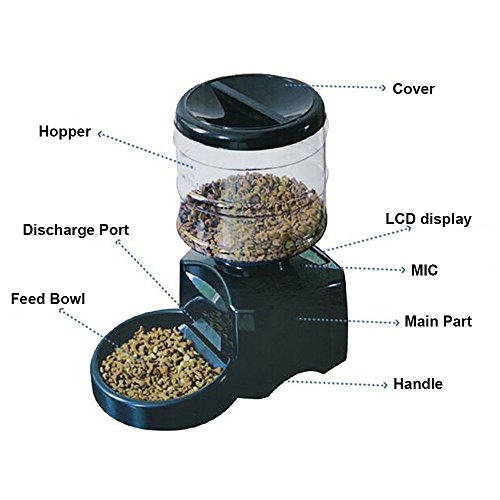-. Binding : Misc. -. Brand : PYRUS -. EAN : 0601187220580 -. Feature : Food hopper holds 5.5 liters dry foods can satisfied all kinds of pet; / The LCD screen device and complete functions make the operate is very easy; / The food hopper is used ABS plastic materials, resistance to impact and good heat resistance; / 2016 model Perfect Dinner Pet Feeder comes with voice recording, make your pet feel like you're home; / Feed on time when you are away, and then you can track and manage your pet's meal every day(regular quantitative three times). -. Label : PYRUS -. Manufacturer : PYRUS -. MPN : 15Cra2016zy04 -. PackageQuantity : 1 -. PartNumber : 15Cra2016zy04 -. ProductGroup : Pet Products -. ProductTypeName : PET_SUPPLIES -. Publisher : PYRUS -. Studio : PYRUS -. Title : Automatic Feeder, PYRUS Large Automatic Cat Feeder Electric Pet Dry Food Container with LCD Display for Dogs Cats -. UPC : 601187220580