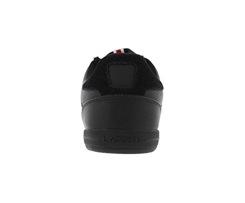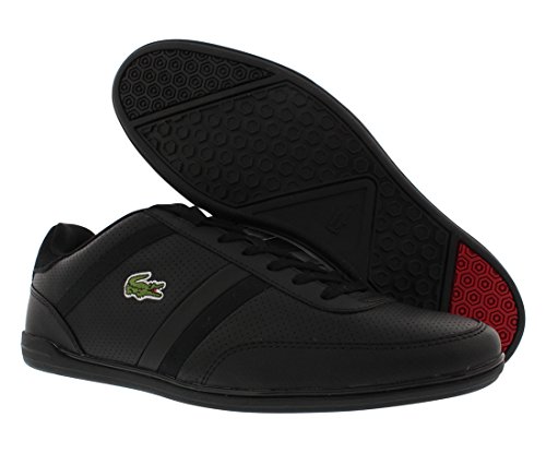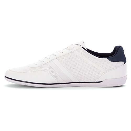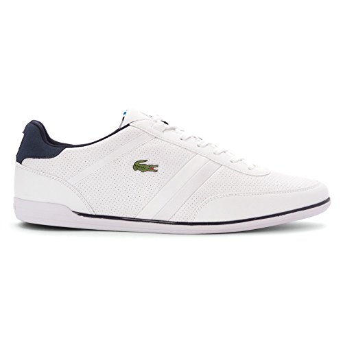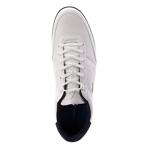 Low-top fashion sneaker with perforated leather upper featuring Lacoste croc applique at side