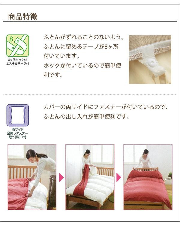 カバーの両側にファスナーが付いており、ふとんの出し入れがとても簡単・便利な掛けふとんカバー。ダブルサイズです。 |