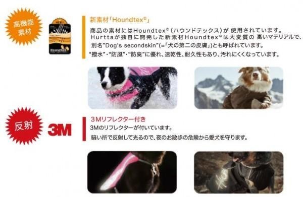 雨の日でも散歩にいきたい、そんなワンちゃんのためのレインコートです。フルッタ社が独自開発した、ハウンドテックス素材を採用。薄くて軽いながらも非常に防水効果が高く、速乾性、耐久性も優れています。 |