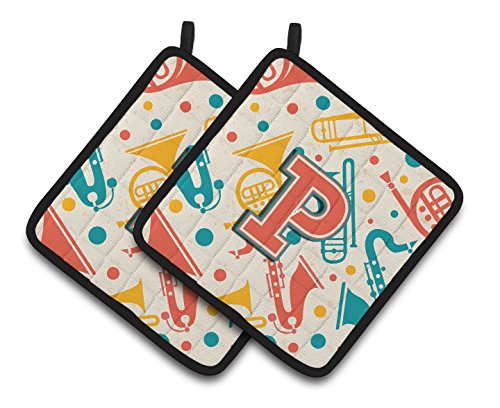 Caroline's Treasures Letter P Retro Teal Orange Musical Instruments Initial Pair of Pot Holders CJ2001-PPTHD, 7.5HX7.5W, Multicolor