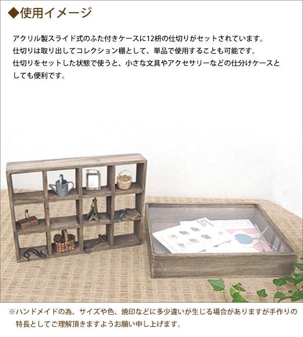 仕切りはミニチュアなどのディスプレイに。フタ付きケースはカードの整理などに活躍します。 製造国:フィリピン 素材・材質:木、アクリル 商品サイズ:約W270×H52×D205mm セット内容:仕切り(12枡)外側のケースアクリルのフタ(スライド式) ※メーカー直送品 ご注文後3~4日後の出荷となります