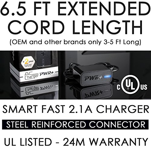 FEATURES: Say Goodbye to Charging with Extension Cords and Sitting on the Floor near Outlets. Only Pwr+ Chargers Have Total Cord Length Extended to 6.5 Ft (Second Photo). Competitor's Products are Only 3-4 Ft Long ! / Steel-Reinforced Micro-USB Tip for Extended Usability / Made in Taiwan