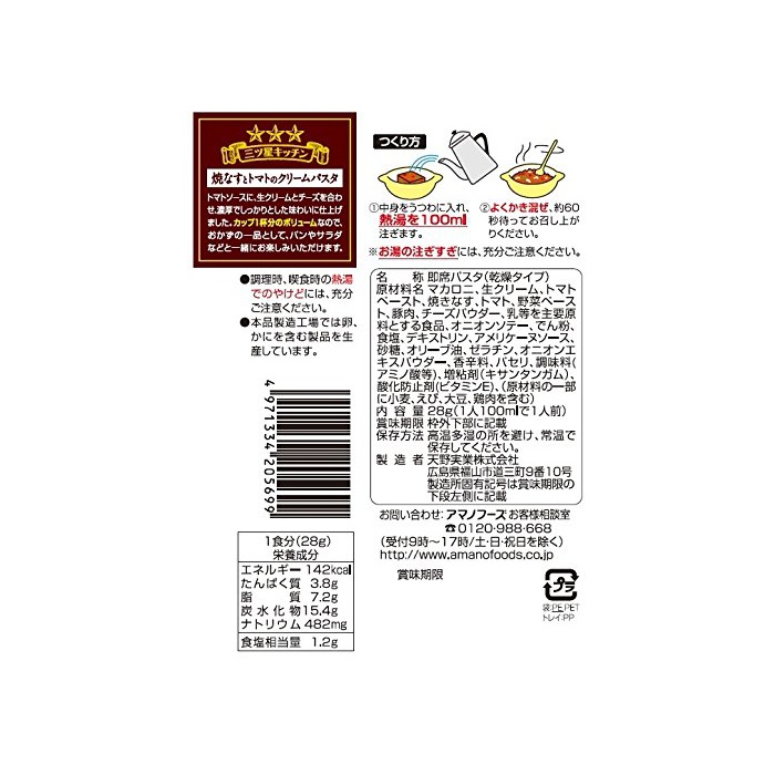 원본상품명: アマノフ?ズ 三ツ星キッチン ?なすとトマトのクリ?ムパスタ 28g×4個