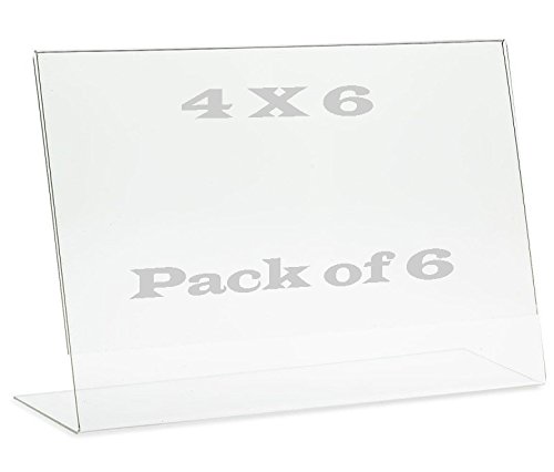 4" X 6” Picture Frame Acrylic Slanted Displays, Horizontal Angled, Photo Frame, Sign Holders, Clear, Self-Standing, For Desk, Bed-Stand, Living Room, And Office, (6-Pack. Horizontal.)