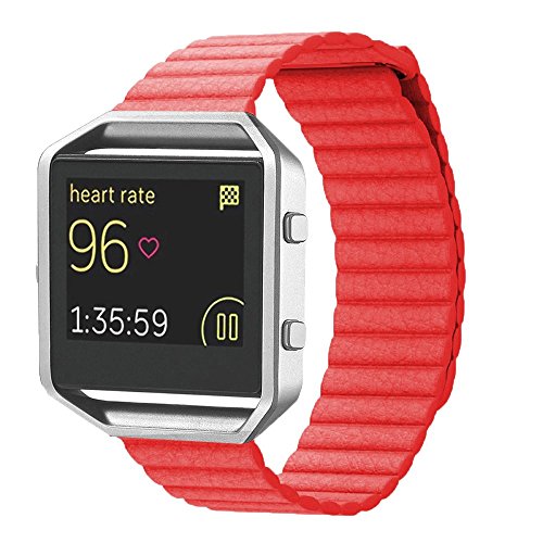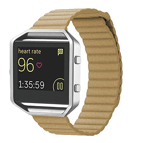 Bands For Fitbit Blaze , 2016 New Genuine Leather Loop Watchband, Magnet Lock Strap Replacement Accessory Band For Fitbit Blaze,No Buckle Needed(No Tracker)