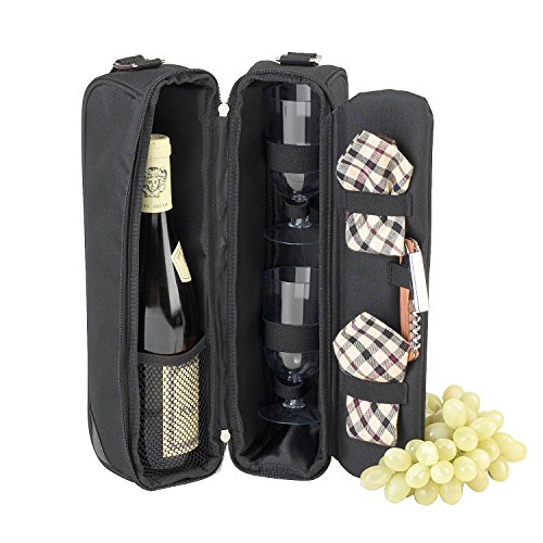 Studio : Picnic at Ascot Publisher : Picnic at Ascot Binding : Kitchen Product Description Top quality deluxe wine holder with glasses featuring state of the art Thermal Shield insulation to maintain wine at the perfect temperature. Glass compartment can be used to hold a second bottle. Contains two glasses, napkins and combination corkscrew. Adjustable shoulder strap. This stylish gift will always impress. Rugged 600D canvas construction. Designed and assembled in the USA. Lifetime warranty.