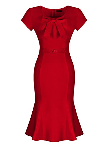 Miusol® Women's Vintage Houndstooth-Print Bow Slim Retro Evening Dress (Small, Red)