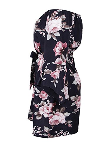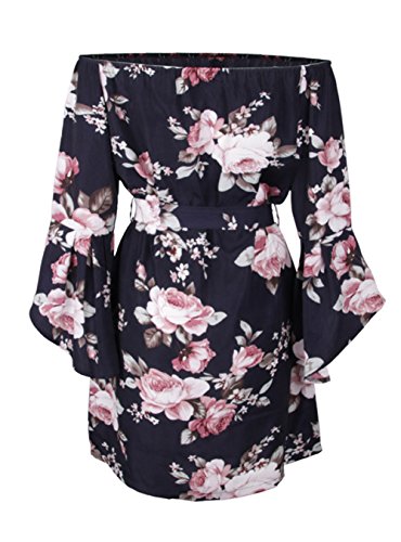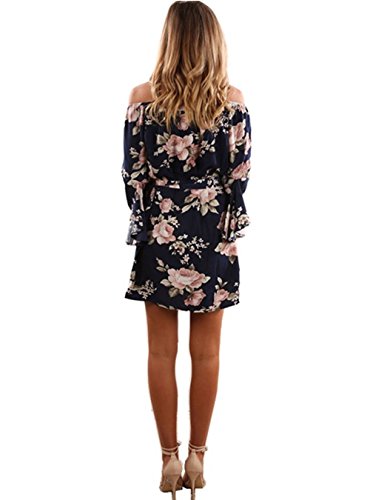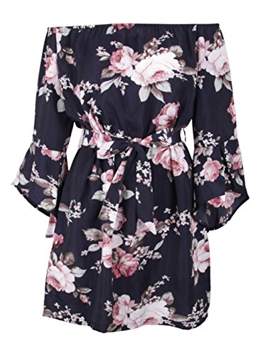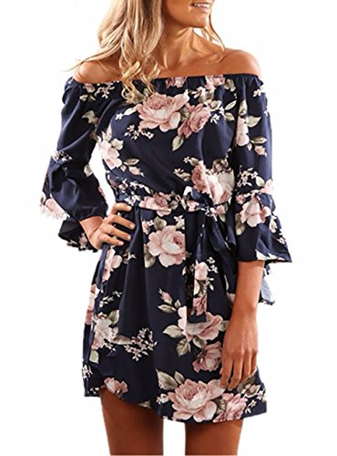 Features: Vintage Floral Print/ Sexy Off Shoulder Strapless/ Slash Neck/ Flare Sleeve/ Lace Up Wasit/ Above Knee Short Dress