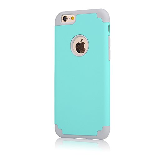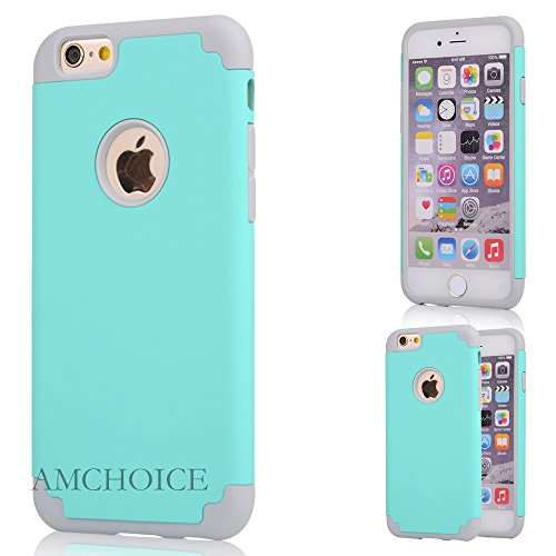 AMCHOICE Hybrid Dual Layer Silicone and PC Combo Case with Stylus, Screen Protector, Cleaning Cloth for iPhone 6 Plus/ 6S Plus - Mint Green/Grey